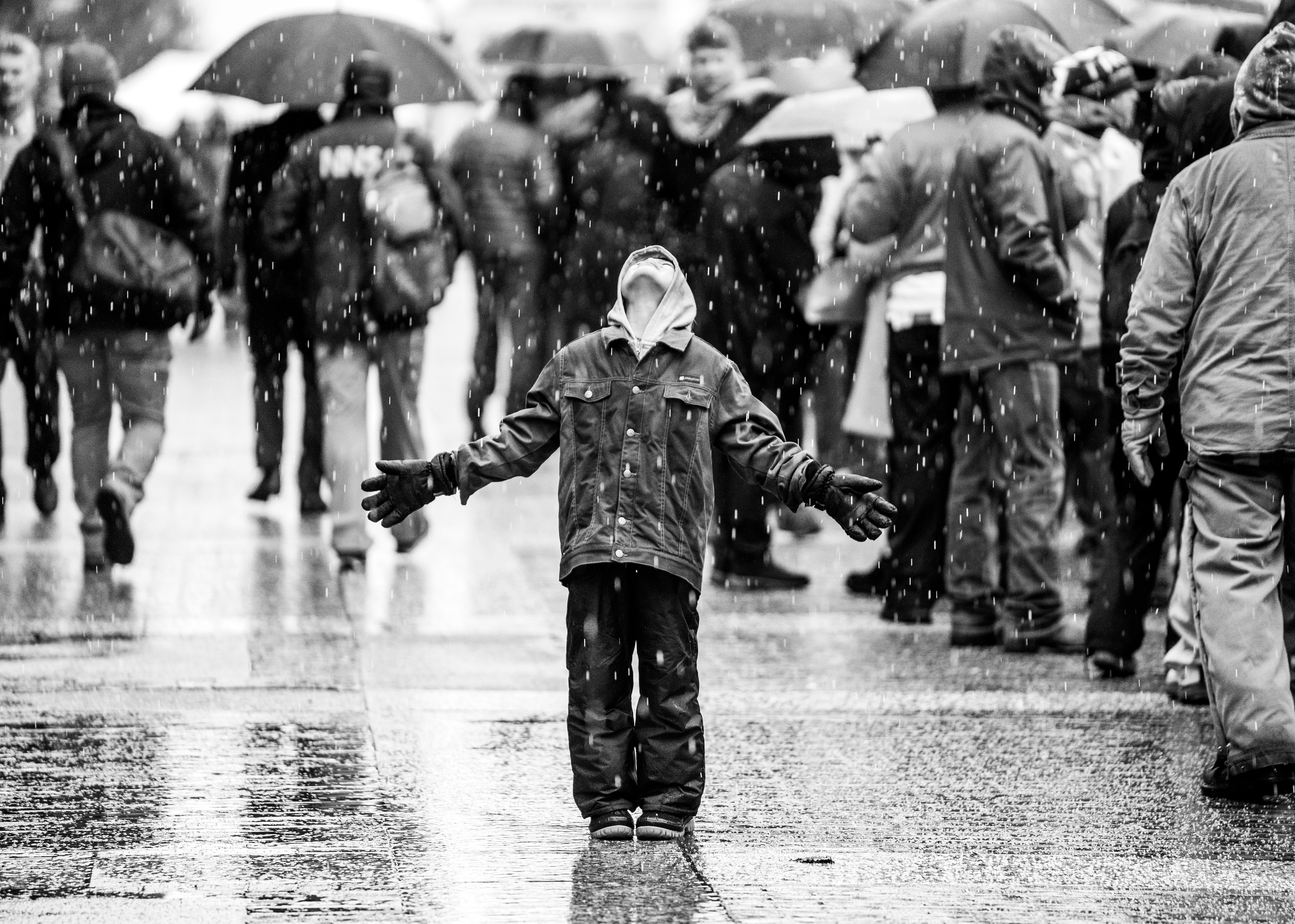 Nate’s silver medal photo is titled “Hope” and represents a very organic moment that he observed during the 2025 Presidential Inauguration. “A kid stepped outside of the line with his parents and sort of basked in the rain with his arms extended, looking to the sky, and it was just a moment of the right place, right time,” Nate shared. “I think I got some of the best pictures of my career. Some of them I have hung in my house now.”